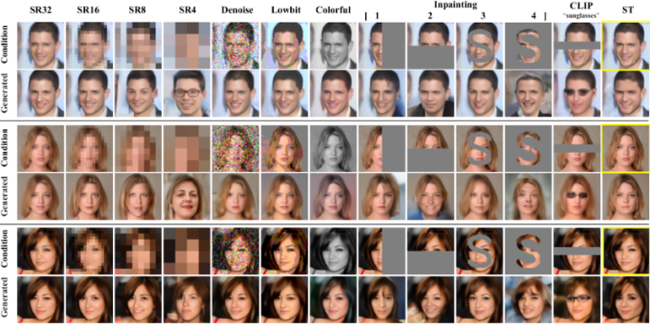 如上图所示,DDN支持丰富的零样本条件生成任务,其做法和图1中的DDN重建过程几乎一样。