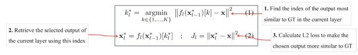 距离从K个outputs中选出和重建target最相似的一张output。再把被选中的output图输入回网络,作为第二层DDN的condition。这样,第二层DDN就会基于condition(被选中的图)生成新的K张和target更相似的outputs。