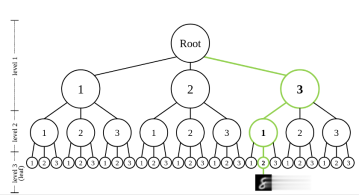 Latent:这一路选下来,每一层被选中output的index就组成了target的latent(图中绿色部分「3-1-2」)。因此latent是一个长度为L,取值范围[1,K]的整数数组。